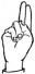 На ћирилици написано ОЛГА КЉУКОВНИЦА састоји се из 14 слова [?]. Исписано ћириличном једноручном азбуком за глувонеме: